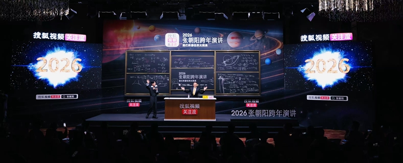 12月31日晚10点,搜狐创始人、董事局主席兼首席执行官、物理学博士张朝阳如期开启他的第三场跨年演讲。这场以“我们所居住的太阳系”为主题的思想盛宴,通过搜狐视频关注流全程直播,在探索太阳系奥秘的思辨中,与现场观众与网友一起一同迎接2026年的第一缕晨光。