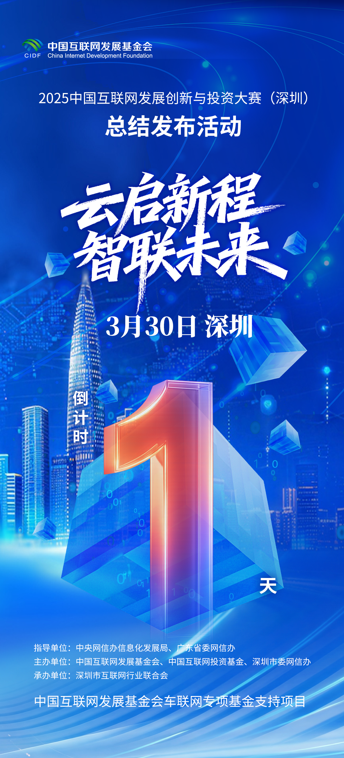 由中央网信办信息化发展局、广东省委网信办指导,中国互联网发展基金会、中国互联网投资基金及深圳市委网信办联合主办的2025中国互联网发展创新与投资大赛(深圳)总结发布活动,将于3月30日在深圳举行。作为我国互联网领域创新创业的重要赛事平台,本届大赛以“云启新程 智联未来”为主题,将集中展示前沿技术成果,正式揭晓一、二、三等奖及优秀奖项目。